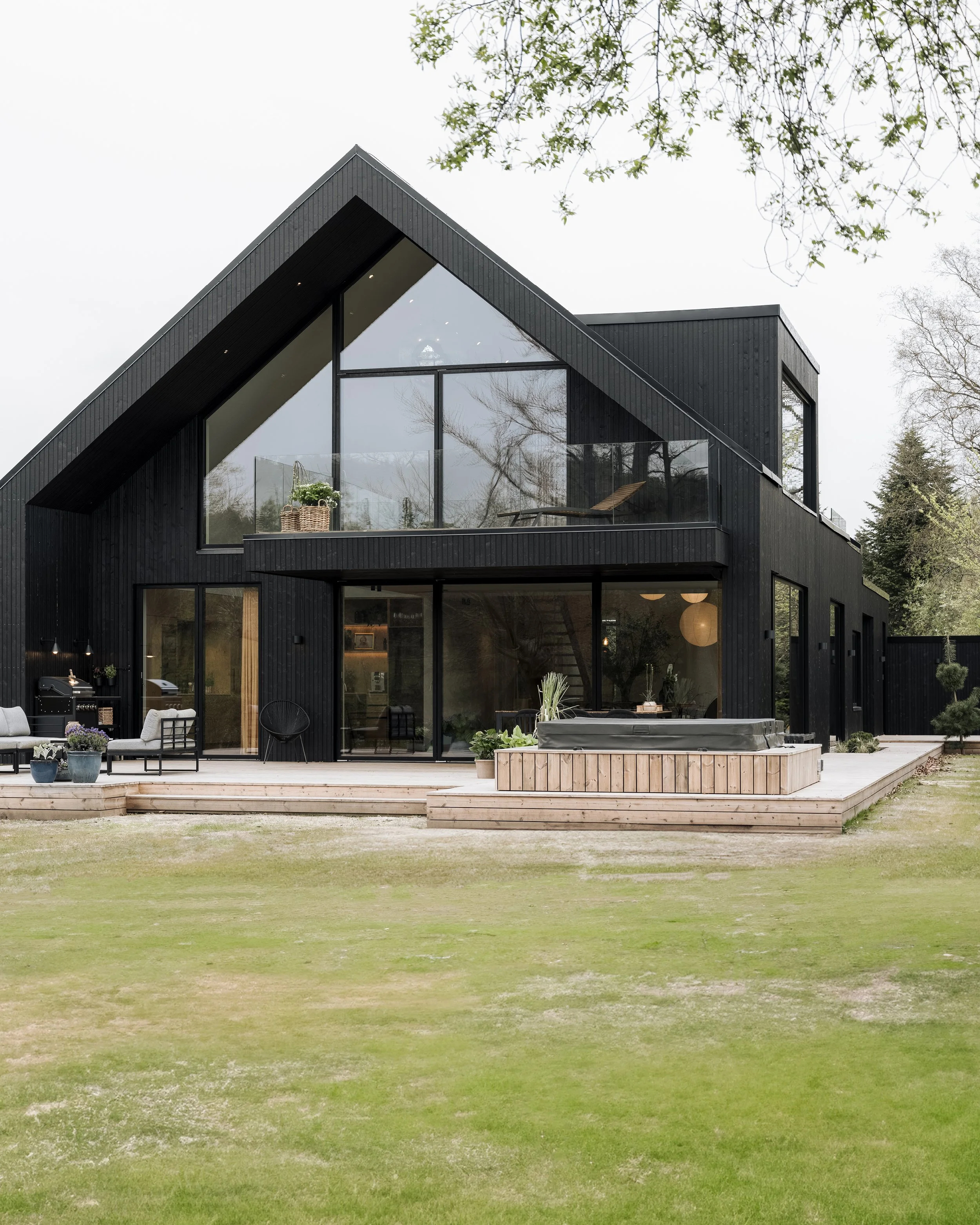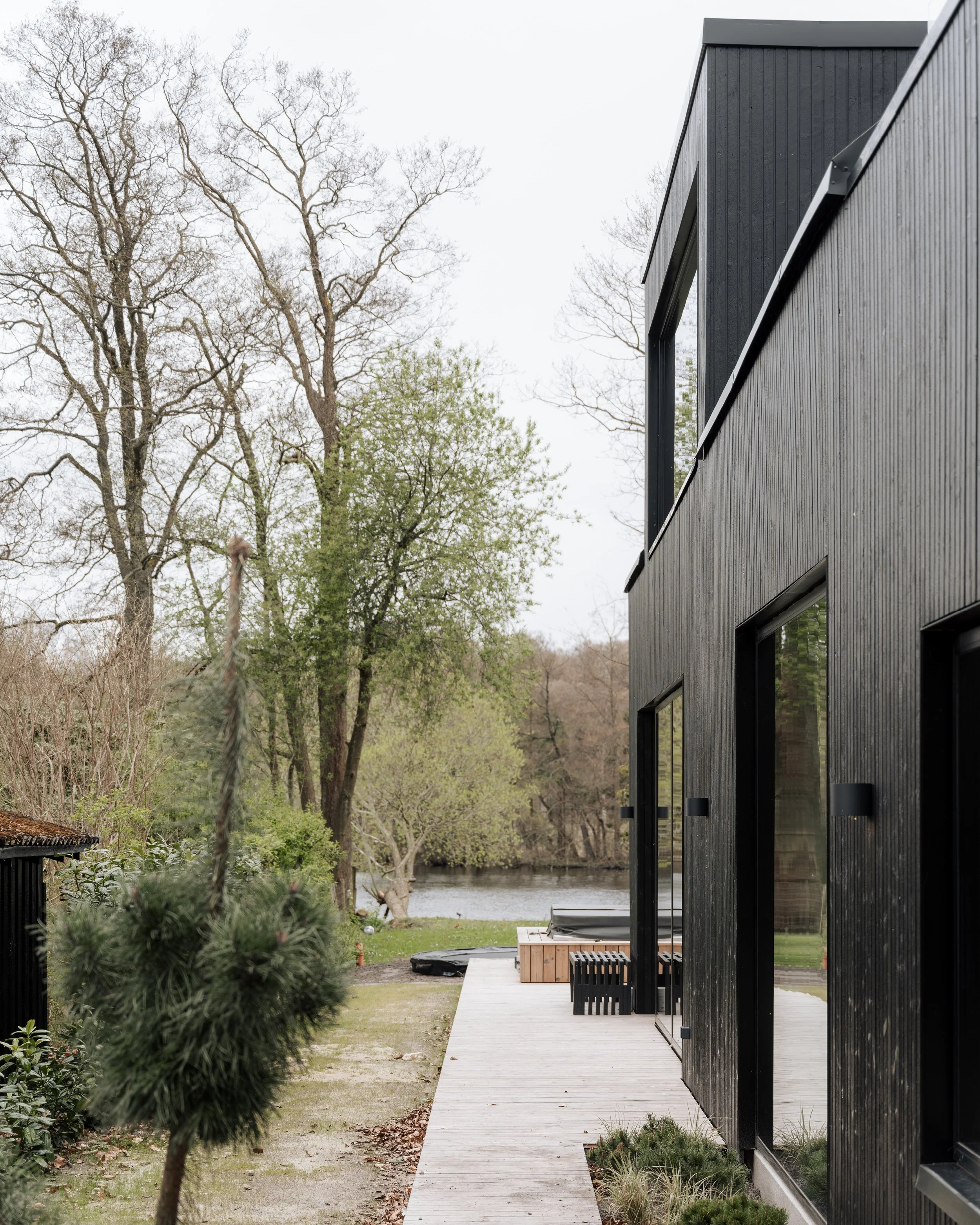 TIDLØST DESIGN HAR VÆRET VIGTIGT for parret for alle valg i deres nye huse: “Vi har altid syntes, at sorte træhuse var flotte, også når de var 20 år gamle, da de holder et flot og skarpt udtryk. Det var meningen, at huset skulle være klædt i cedertræ, men vi er rigtige glade for vores valg beslutning med det sorte træ og de flotte, skarpe arkitektoniske linjer”, fortæller Line Vinther.
